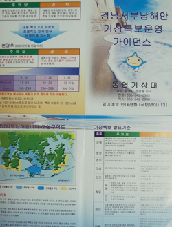 Å뿵±â»ó´ë°¡ Á¦ÀÛÇÑ ÀÌ È«º¸¿ë ¸®Ç÷¿Àº °¢ Áö¿ªº° ÇØ»óº° ±¸¿ªµµ¸¦ ÅëÇØ µ¿ºÎ, ¼ºÎ, ³²ºÎ 3°³±Ç¿ªÀÇ Æò¼ö±¸¿ª°ú ³²Çرº. °ÅÁ¦µ¿ºÎ ¿¬¾È¹Ù´Ù·Î ±¸ºÐÇÑ °æ°èÁö¿ª, °¢Á¾ ±â»óƯº¸ ¹ßÇ¥±âÁØ, ÅÂdzƯº¸ ±âÁØ ¼¼ºÐÈ µîÀ» ¾È³»Çϰí ÀÖ´Ù.