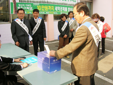 °³ÀÎÀÌ ±âŹÇÑ Á¤Ä¡ÀÚ±ÝÀ» ±¹°íº¸Á¶±Ý ¹èºÐºñÀ²¿¡ µû¶ó °¢ Á¤´ç¿¡ ¹èºÐÇÏ´Â ¡®Á¤Ä¡ÀÚ±Ý ±âŹÁ¦µµ¡¯ ¸¦ È«º¸Çϱâ À§ÇØ Àü±¹ÀûÀ¸·Î µ¿½Ã¿¡ ½Ç½ÃµÈ ÀÌ ³¯ Çà»ç¿¡´Â °ÅÁ¦½Ã ¹Ù¸¥¼±°Å½Ã¹Î¸ðÀÓ È¸¿ø 15¸í°ú °ø¸í¼±°ÅÀÚ¿øºÀ»çÀÚ 10¿©¸í, ¼±°ÅºÎÁ¤ °¨½Ã´Ü¿ø 10¸í, ¼±°üÀ§ À§¿ø ¹× Á÷¿ø 10¿©¸í, °ÅÁ¦½Ã°ø¹«¿ø 10¿©¸í µî 50¿©¸íÀÌ Âü¼®ÇØ ¹Ù¸¥Á¤Ä¡¸¦ À§ÇØ ½Ã¹ÎµéÀÇ ±ú²ýÇÑ Á¤Ä¡ÀÚ±Ý ±âŹÂü¿©¸¦ È«º¸Çϰí Âü¼®ÀÚ°¡ Á÷Á¢ ±âŹÇÏ´Â ¼ø¼µµ °¡Á³´Ù.