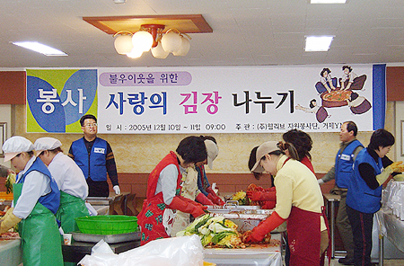 ¢ßÀ£¸®ºê¿Í °ÅÁ¦YMCAÀÇ ÀÚ¿øºÀ»çÀÚµéÀÌ ÇÔ²² ±èÀåÀ» ´ã°í ÀÖ´Ù