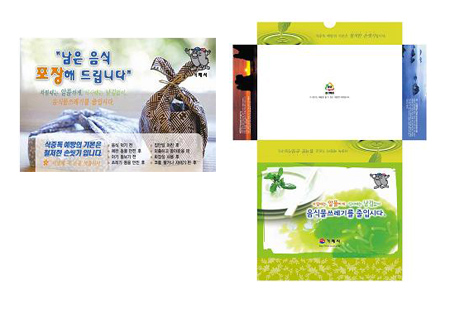 ÀÌ¿¡ µû¶ó ½Ã ȯ°æ°ü¸®°ú À§»ýºÎ¼´Â ÀϹÝÀ½½ÄÁ¡ °¡¿îµ¥ Èñ¸ÁÇÏ´Â ¾÷¼Ò¸¦ Áß½ÉÀ¸·Î ³²Àº À½½Ä Æ÷Àå¿ë µµ½Ã¶ô 1¸¸°³¿Í È«º¸¿ë ½ºÆ¼Ä¿ 1õ¸Å¸¦ ¸¸µé¾î ¹èºÎÇÏ°í ¿Á¿ÜÀü±¤ÆÇ µîÀ» ÀÌ¿ëÇØ È«º¸È°µ¿À» ¹úÀ̱â·Î Çß´Ù.