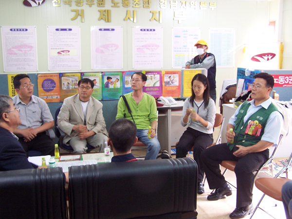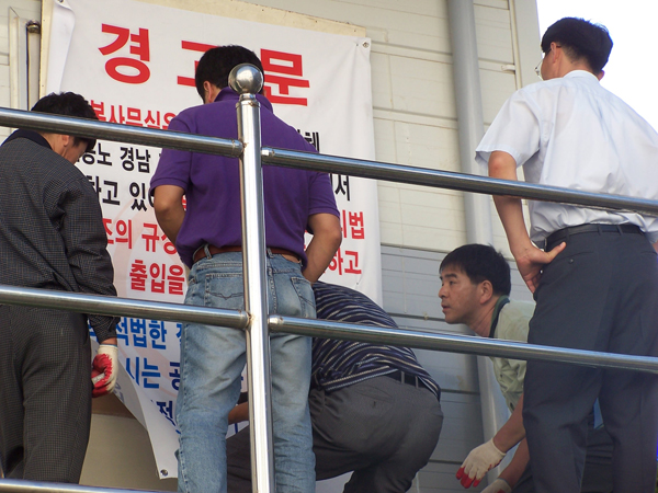 À̳¯ ¿ÀÈÄ3½Ã °ÅÁ¦Áö¿ª ½Ã¹Î´Üü´ëÇ¥ 8¸íÀÌ ³ëÁ¶Åº¾Ð Áß´ÜÀ» ¿ÜÄ¡¸ç °ø³ëÁ¶ »ç¹«½ÇÀÔ±¸¿¡¼ ÇàÁ¤´ëÁýÇàÀ» ÀúÁöÇÏ´Â ¿¬Á³ó¼ºÀ» ¹ú¿´À¸¸ç ³ëÁ¶ÁýÇàºÎ´Â ¹®À» ¾ÈÀ¸·Î Àá±×°í Áý±â±îÁö ½×¾Æ ¿Á¼âÅõÀïÀ» ¹ú¿´À¸³ª ´ëÁýÇà ½ÃÀÛ 30¿©ºÐ¸¸¿¡ »ç¹«½ÇÆó¼â°¡ ³¡³µ´Ù.
