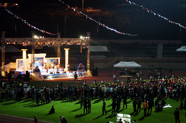 Á¦12ȸ ½Ã¹ÎÀÇ ³¯À» ±â³äÇØ 20ÀÏ Àú³á 6½ÃºÎÅÍ °ÅÁ¦°ø¼³¿îµ¿Àå Æ¯¼³¹«´ë¿¡¼ °ÅÁ¦½Ã¹Î °¡¿ä³ë·¡ÀÚ¶ûÀÌ ÆîÃÄÁ³´Ù.