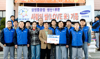 »ï¼ºÁß°ø¾÷(»çÀå ±è¡¿Ï)ÀÌ ½Ò ³ª´©±â Çà»ç¸¦ ÅëÇØ ÀÌ¿ô »ç¶ûÀ» ½ÇõÇϰí ÀÖ´Ù. ÀÓÁ÷¿ø 4õ¿©¸íÀÌ ÀڸŰῬÀ» ¸ÎÀº µÐ´ö¸é, °ÅÁ¦¸éÀ» ºñ·ÔÇÑ 4°÷ÀÇ ¾î·Á¿î ÀÌ¿ôÀ» À§ÇØ ÃÑ 7õ7¹ékgÀÇ ½ÒÀ» Àü´ÞÇÏ´Â 'LOVE Ú·' Çà»ç¸¦ °¡Á³´Ù°í ¹àÇû´Ù. »ý»ê 1ÆÀÀº ½Ò 1750kg¸¦ µÐ´ö¸é¿¡ ±â¼úºÎ¹®Àº 850kg¸¦ Àå¸ñ¸é¿¡, ±×¸®°í 2õkg´Â °ÅÁ¦½Ã ÀÚ¿øºÀ»ç¼¾ÅÍ °æ·Î½Ä´ç¿¡ Àü´ÞÇß´Ù.