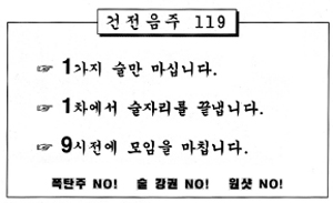 »ç¶ûÇÏ´Â °¡Á·ÀÌ OKÇÒ ¶§±îÁö °è¼Ó ÁøÇàµÈ´Ù´Â À̸¥¹Ù '°ÇÀüÀ½ÁÖ 119 Ä·ÆäÀÎ'¿¡´Â '1°¡Áö ¼ú¸¸, 1Â÷¿¡¼, 9½ÃÀü±îÁö ¸¶Ä¡ÀÚ' ¶ó´Â 3°¡Áö ½Çõ»çÇ×ÀÌ ´ã°Ü ÀÖ´Ù.