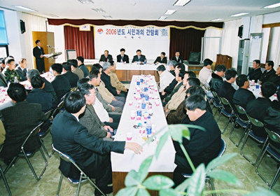¼ø¹æ ±â°£µ¿¾È ±è½ÃÀåÀº °¢ Áö¿ªº° ¹Î¿ø ¹ß»ýÀÌ ¿¹»óµÇ´Â »çÇ×°ú ÁֹΠÆíÀǽÃÃ¥, Á¦¾È»çÇ× µî¿¡ ´ëÇÑ À¾¸éµ¿ÀåÀÇ º¸°í¸¦ ¹ÞÀº ÈÄ ÀÌ¾î ½Ã¹Î°úÀÇ ´ëÈ¿¡¼´Â 2006 ½ÃÁ¤ ¼º°ú ¹× 2007 ÁÖ¿ä¾÷¹« °èȹÀ» ºö ÇÁ·ÎÁ§Æ®·Î ¼³¸íÇϰí Âü¼®ÇÑ Áֹεé°ú °ÝÀÇ ¾ø´Â ´ëÈ ½Ã°£À» °®±â·Î Çß´Ù.