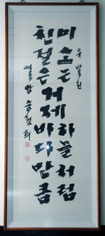 ¿ìÀÌ(éÚì¼) ¼±»ýÀº 20³â µ¿¾ÈÀÇ °¨¿Á »ýȰÀ» ÇÏ¸é¼ »õ·Î¿î ÇÑ±Û ¼Ã¼¸¦ âÁ¶Çß´Ù. °¨¿Á¿¡ ÀÖ´Â ÀڽĿ¡°Ô º¸³½ ¾î¸Ó´Ï ÆíÁö ÇÊü¸¦ ¸ðÇÊ(Ù½ù¶)·Î »ï¾Æ µ¶Æ¯ÇÑ ÇѱۼüÀÎ ¡®¿¬´ëü¡¯¸¦ ¿Ï¼º½ÃÄ×´Ù. ¡®¹Î(ÚÅ)ü¡¯, ¡®´õºÒ¾îü¡¯¶ó°íµµ ÇÑ´Ù. Á¶Á¤·¡ ¼Ò¼³ ÇѰÀÇ Á¦È£, ºÎ»ê¹ÎÁÖÇ×Àï±â³ä°ø¿ø Ãʼ®, TVÀι°Çö´ë»ç, °í ±èÁÖ¿ ¿»ç Ã߸ðºñ, TV´º½º Ç÷¯½º ¡®¾Ï´Ï¿È´Ï¡¯ µî ¿©·¯ °÷¿¡ ½Å¿µº¹ ±³¼öÀÇ º×±Û¾¾°¡ »ì¾Æ ÀÖ´Ù.