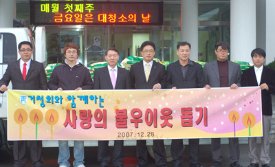 ¶Ç °ÅÁ¦Ã»³âȸ (´ëÇ¥ Â÷ÁÖȯ)´Â 30¿©¸íÀÇ È¸¿øÀÌ ½Ê½ÃÀÏ¹Ý ¸ðÀº ȸºñ·Î Àú¼ÒµæÃþÀ» À§ÇÑ ¾ç°î 20kgµéÀÌ 30Æ÷, ¶ó¸é 50¹Ú½º¸¦, ¹®µ¿¸® ¼ÒÀç ³«µ¿°¿À¸® ½Ä´ç¿¡¼´Â °³¾÷ ´ä·Ê·Î ¹ÞÀº ¾ç°î20kgµéÀÌ 11Æ÷¸¦ °ÅÁ¦½Ã¿¡ ±âŹÇÏ¿© °ü³» Àú¼ÒµæÃþ¿¡ Àü´ÞÇß´Ù.