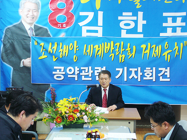 ±âÈ£8¹ø ±èÇÑÇ¥ È帰¡ ÀÚ½ÅÀÌ ±¹È¸ÀÇ¿ø¿¡ ´ç¼±µÇ¸é ¡®Á¶¼±Çؾ缼°è¹Ú¶÷ȸ¡¯¸¦ °ÅÁ¦¿¡ À¯Ä¡ÇÏ°Ú´Ù°í °ø¾àÇß´Ù. 31ÀÏ ¿ÀÈÄ ÀÚ½ÅÀÇ ¼±°Å»ç¹«½Ç¿¡¼ °¡Áø ±âÀÚȸ°ßÀ» ÅëÇØ À̰°ÀÌ ¹àÇû´Ù.