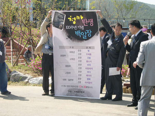 °ÅÁ¦¹®ÀÎÇùȸ(ÁöºÎÀå ±è¹«¿µ)°¡ Áö³ 18ÀÏ °ÅÁ¦½Ã µÐ´ö¸é û¸¶±â³ä°ü ¾Õ ±¤Àå¿¡¼ Çлý ¹× ÀϹÝÀÎ 500¿©¸íÀÌ Âü°¡ÇÑ °¡¿îµ¥ °³ÃÖÇÑ Ã»¸¶ ź»ý 1¹éÁֳ⠱â³ä ¹éÀÏÀå ÀÔ»óÀÚ¸¦ 22ÀÏ ¹ßÇ¥Çß´Ù.