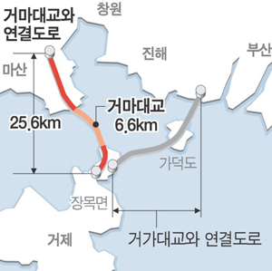 ¸¶»êÀ» ½ÃÁ¡À¸·Î Áß°Áø±îÁö 505.2§°ÀÇ ±¹µµ 5È£¼±ÀÌ °ÅÁ¦±îÁö ¿¬ÀåµÇ¸é¼ 541.6§°·Î ´Ã¾î³ª°Ô µÇ¸ç ½ÃÁ¡µµ ¸¶»ê¿¡¼ °ÅÁ¦-Áß°ÁøÀ¸·Î ¹Ù²î°Ô µÈ´Ù.