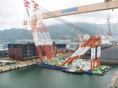 °ÅÁ¦ ´ë¿ìÁ¶¼±Çؾç(www.dsme.co.kr.´ëÇ¥ ³²»óÅÂ)ÀÌ 30¸¸Åæ±Þ ÃÊ´ëÇü¿øÀ¯¿î¹Ý¼± °ÇÁ¶½Ã °ÇÁ¶½Ã°£À» ȹ±âÀûÀ¸·Î ´ÜÃàÇÒ ¼ö ÀÖ´Â ¡®¸µÅ¸ÀÔ(Ring Type) ºí·ÏžÀç(°í¸®¸ð¾çÀÇ ÃÊ´ëÇü ºí·Ï)¡¯ °ø¹ýÀ» ¼¼°èÃÖÃÊ·Î ¼º°øÇß´Ù.