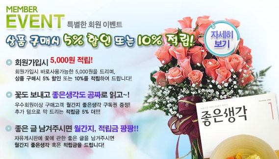 Ä¿¹Â´ÏƼ À̺¥Æ®µµ ½ò½òÇÏ´Ù. ²À Á¦Ç°À» ±¸¸ÅÇÏÁö ¾Ê´õ¶óµµ »çÀÌÆ® ÀÚÀ¯°Ô½ÃÆÇ¿¡ ²É¿¡ °üÇÑ ÁÁÀº ±ÛÀ» ³²°Ü³õÀ¸¸é, ±× Áß ¼±Á¤µÈ °í°´µé¿¡°Ô´Â 'ÁÁÀº»ý°¢' ±¸µ¶±Ç ¹× Àû¸³±ÝÀ» ÇÔ²² ¹ÞÀ» ¼ö ÀÖ´Â Çà¿îÀÌ ±â´Ù¸®°í ÀÖ´Ù.