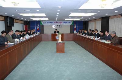À̳¯ º¸°íȸ¿¡¼ ±è ½ÃÀåÀº ¡°°Å°¡´ë±³ °³Åë¿¡ ´ëºñ, ½Ã°¡ ÃßÁø ÁßÀÎ °¢Á¾ Áß․´ëÇü»ç¾÷ÀÇ ¿ø¸¸ÇÑ ¸¶¹«¸®¸¦ À§Çؼ´Â ³»³â ¿¹»êÈ®º¸°¡ ¹«¾ùº¸´Ùµµ Áß¿äÇÏ´Ù¡±¸é¼ ¡°½ÃÀåÀÎ ³ªºÎÅÍ Á÷Á¢ ¹ß·Î ¶Ù¾î ±¹․µµºñ È®º¸¿¡ ¾ÕÀå¼³ °ÍÀ̹ǷΠ°£ºÎ °ø¹«¿øµéµµ Áß¾ÓºÎó ¹× °æ³²µµ¸¦ Á÷Á¢ ¹æ¹® ¡®¹ß·Î ¶Ù´Â ÇàÁ¤¡¯À» ÆîÃÄ ±¹․µµºñ È®º¸¿¡ ÃÖ¼±À» ´ÙÇ϶󡱰í Áö½ÃÇß´Ù.