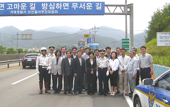 °æ³² °ÅÁ¦°æÂû¼(¼Àå ¹Ú½ÂÇö)´Â 2ÀÏ °ÅÁ¦Áö¿ª ±³Åë ¹«»ç°í¸¦ ±â¿øÇÏ°í °ÅÁ¦¸¦ ¹æ¹®ÇÏ´Â »ç¶÷µéÀÌ ¾ÈÀü¿îÀüÀǽÄÀ» µÇ»õ±æ ¼ö ÀÖµµ·Ï °ÅÁ¦°ü¹® ½Å°ÅÁ¦´ë±³ ¾Õ¿¡ ±³Åë¾ÈÀü È«º¸Å¾À» ¼³Ä¡, Áذø±â³ä½ÄÀ» °¡Á³´Ù.