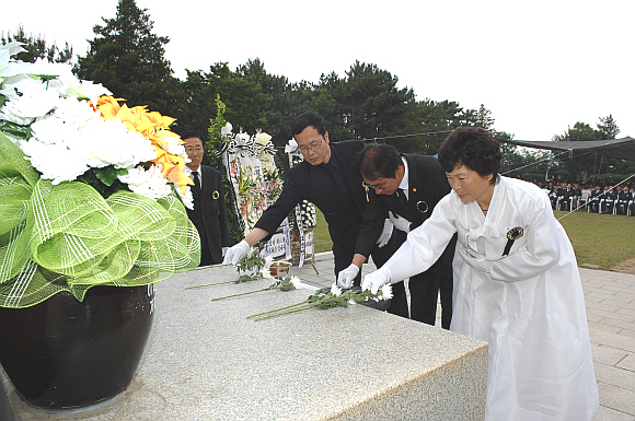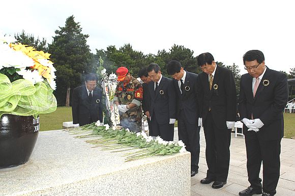 6ÀÏ ¿ÀÀü 10½Ã ±èÇѰ⠰ÅÁ¦½ÃÀåÀ» ºñ·ÔÇÑ À±¿µ ±¹È¸ÀÇ¿ø, ¿Á±âÀç ½ÃÀÇȸÀÇÀå, ±ÇÇõ³² °ÅÁ¦´ë´ëÀå, ¹Ú½ÂÇö °ÅÁ¦°æÂû¼Àå, º¸ÈÆ´ÜüÀå, ±â°ü´ÜüÀå, »óÀ̱º°æÈ¸¿ø, Àü¸ô±º°æÀ¯Á· µî 1000¿©¸íÀÌ Âü¼®ÇÑ °¡¿îµ¥ °íÇöµ¿ ÃæÈ¥Å¾¿¡¼ Á¦54ÁÖ³â ÇöÃæÀÏ Ãß³ä½ÄÀÌ ¿·È´Ù.