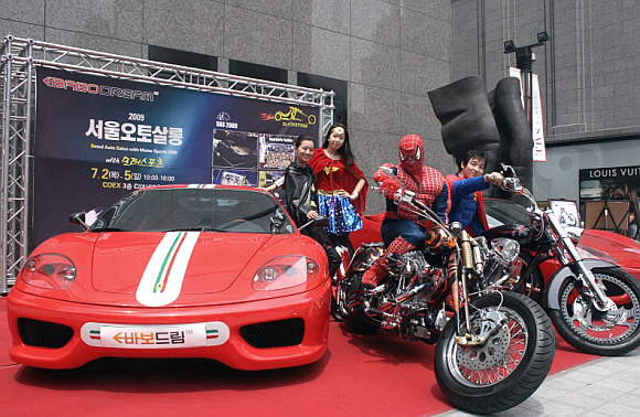 7¿ù 2ÀϺÎÅÍ 4Àϰ£ ¼¿ï ÄÚ¿¢½º¿¡¼ °³ÃֵǴ '2009 ¼¿ï¿ÀÅä»ì·Õ'¿¡ ¾Õ¼ 25ÀÏ ¿ÀÀü ¼¿ï ½Å¼¼°è¹éÈÁ¡ º»Á¡ ¾ß¿Ü±¤Àå¿¡¼ »çÀü Æ÷Åä Çà»ç¸¦ °¡Á³´Ù. À̳¯ '¼öÆÛÄ«¿Í ½´ÆÛ È÷¾î·Î&È÷·ÎÀÎ' ÁÖÁ¦·Î ½´ÆÛ¸Ç, ½ºÆÄÀÌ´õ¸Ç, ¿ø´õ¿ì¸Õ µî ¿µÈ¼Ó ÁÖÀΰø ÀÇ»óÀ» ÀÔÀº ¸ðµ¨µéÀÌ ½´ÆÛÄ«¿Í Ä¿½ºÅÒ¹ÙÀÌÅ©¸¦ ¼±º¸À̰í ÀÖ´Ù.