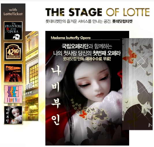 ¿Â¶óÀÎÁ¾ÇÕ¼îÇθô ·Ôµ¥´åÄÄ(www.lotte.com)ÀÌ ¹ÂÁöÄÿ¡ ÀÌ¾î ¿ÀÆä¶ó ¿¹¸Å ¼ºñ½º¸¦ ½ÃÀÛÇß´Ù. ·Ôµ¥´åÄÄÆ¼ÄÏ(ticket.lotte.com)¿¡¼ ¼±º¸À̴ ù ¹øÂ° ¿ÀÆä¶ó´Â 7¿ù17ÀϺÎÅÍ 25ÀϱîÁö ¿¹¼úÀÇÀü´ç¿¡¼ °ø¿¬µÇ´Â <³ªºñºÎÀÎ>À¸·Î, ±¹¸³¿ÀÆä¶ó´ÜÀÇ ¡®¸¶ÀÌ ÆÛ½ºÆ® ¿ÀÆä¶ó¡¯ ½Ã¸®Áî Áß ³× ¹øÂ° °ø¿¬ÀÌ´Ù.