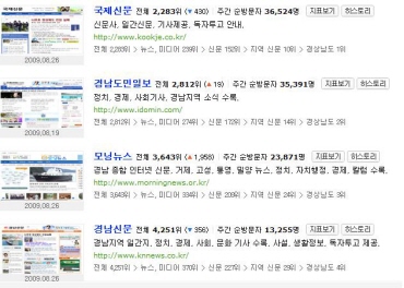 °æ»ó³²µµ 1À§´Â ±¹Á¦½Å¹®, 2À§ °æ³²µµ¹ÎÀϺ¸°¡ 3À§ ¸ð´×´º½º, °æ³²½Å¹®ÀÌ 4À§ ¿´´Ù. ´ÙÀ½¿¡ µî·ÏµÇ¾î ÀÖ´Â Áö¿ª½Å¹®»ç´Â ¸ðµÎ 857°³»ç(°æ»ó³²µµ 72°³»ç)¸ç ±×Áß ¸ð´×´º½º´Â 24À§´Ù.