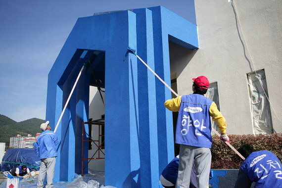 ÀÌ ³¯ 30¿©¸íÀÇ ºÀ»çÀÚµéÀº À̸¥ ¾ÆÄ§ºÎÅÍ º×°ú ÆäÀÎÆ®¸¦ µé°í ³ªÅ¸³ª ½Ã¼³¹°¿¡ ÆäÀÎÆ®°¡ ¹¯Áö ¾Êµµ·Ï ºñ´Ò·Î ½Î¸ç °Ç¹° Àüü¸¦ ²Ä²ÄÈ÷ µµ»öÇß´Ù.º¹Áö°ü °ü°èÀÚ´Â ¡°¿©±âÀú±â »óóÅõ¼ºÀÌÀÎ °Ç¹°ÀÌ »õ·Î ÁöÀº °Íó·³ º¯Çß´Ù¡±¸ç ¡°»ï¼ºÁß°ø¾÷ÀÇ µµ¿òÀ¸·Î ¾î¸£½ÅµéÀ» û°áÇϰí ÁÁÀº ȯ°æ¿¡ ¸ð½Ç ¼ö ÀÖ°Ô µÇ¾î ±â»Ú´Ù¡±°í ¹Ì¼ÒÁö¾ú´Ù.