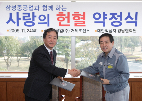 »ï¼ºÁß°ø¾÷(´ëÇ¥ÀÌ»ç ºÎȸÀå ±è¡¿Ï)Àº 24ÀÏ °ÅÁ¦Á¶¼±¼Ò º»°ü¿¡¼ ¹Ú¿µÇå ºÎ»çÀå(ÀλçÃѰý)°ú ´ëÇÑÀû½ÊÀÚ»ç °æ³²Ç÷¾×¿ø ÀÌ»ó±â ¿øÀå ¹× °ü°èÀÚ°¡ ÇÔ²² ÇÑ ÀÚ¸®¿¡¼ Áö¼ÓÀûÀÎ ÇåÇ÷À» ¾à¼ÓÇÏ´Â ÇåÇ÷ ¾àÁ¤½ÄÀ» ä°áÇß´Ù.