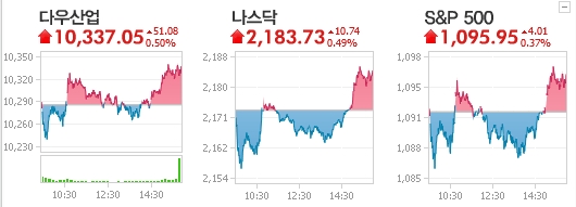 À̳¯ ´º¿åÁõ±Ç°Å·¡¼Ò(NYSE)¿¡¼ ´Ù¿ìÁ¸½º »ê¾÷Æò±ÕÁö¼ö´Â Àü³¯º¸´Ù 51.08 »ó½ÂÇÑ 1¸¸337.05¿¡, ½ºÅÄ´õµå ¾Øµå Ǫ¾î½º(S&P) 500 Áö¼öµµ 4.01 ¿À¸¥ 1095.95¸¦, ±â¼úÁÖ Áß½ÉÀÇ ³ª½º´Ú Áö¼ö ¿ª½Ã 10.74 ¶Ú 2183.73À» °¢°¢ ±â·ÏÇß´Ù.