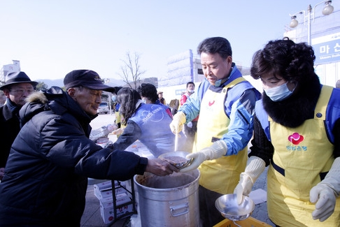 22ÀÏ µ¿Áö¸¦ ¸Â¾Æ ¸¶·ÃµÈ À̳¯ Çà»ç´Â ½ÅÈ«±â ºÎÇàÀåÀ» ºñ·ÔÇØ °æ³²ÀºÇà ¸¶»êÁö¿ªºÀ»ç´ë 25¿©¸í°ú ´ëÇÑÀû½ÊÀÚ»ç °æ³²Áö»ç ÀÚ¿øºÀ»çÀÚ 20¿©¸íÀÌ Âü¿©Çß´Ù. Çà»ç´çÀÏ ÀÚ¿øºÀ»çÀÚµéÀº ¸¶»ê¿ªÀ» ã´Â µ¶°Å³ëÀΰú ¹«ÀÇŹÀÚ, ³ë¼÷ÀÚ µî Áö¿ª¹Îµé¿¡°Ô 3000ÀκÐÀÇ µ¿ÁöÆÏÁ×°ú ¹°±èÄ¡, °£½Ä°Å¸® µîÀ» ³ª´²Áá´Ù.
