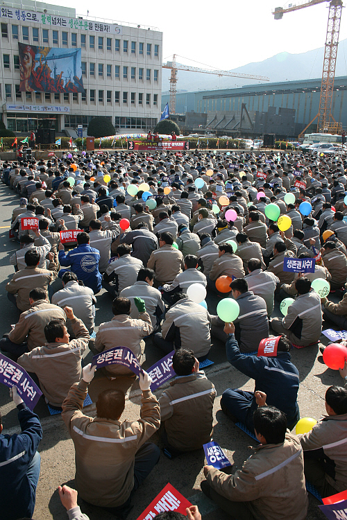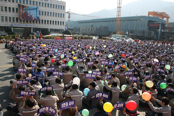 1õ500¿©¸íÀÇ ³ëµ¿ÀÚµéÀÌ ¸ðÀÎ À̳¯ Áýȸ¿¡¼ ÃÖâ½Ä À§¿øÀåÀº ¡°¸Å°¢ÀÌ ÁøÇàµÈ »ç¾÷Àå¿¡¼ ±¸Á¶Á¶Á¤ ¾øÀÌ Áö³ª°£ °÷Àº ¾ø´Ù¡±°í ÀüÁ¦Çϰí, ¡°¼¼°è ÇØ¿î»çÀÇ ¾î·Á¿ò°ú ¼öÁÖºÎÁø µîÀ¸·Î ÇÑÁøÁß°ø¾÷ÀÇ Èñ¸ÁÅðÁ÷À» ½ÃÀÛÀ¸·Î Á¶¼± »ê¾÷ÀÇ ±¸Á¶Á¶Á¤ÀÌ ½ÃÀ۵ƴÙ. ´ë¿ìÁ¶¼±ÀÇ ±¸Á¶Á¶Á¤µµ ¾î¶»°Ô µÉ Áö ¾Ë ¼ö ¾ø´Â »óȲ¡±À̶ó°í À§±â°¨À» ÀüÇß´Ù.