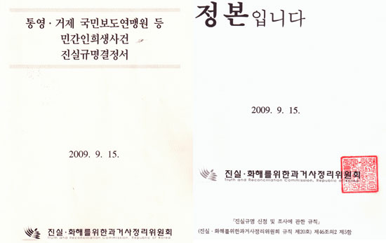 À̺¸´Ù ¾Õ¼ Áø½Ç¡¤ÈÇØ¸¦À§ÇѰú°Å»çÁ¤¸®À§¿øÈ¸(À§¿øÀå ÀÌ¿µÁ¶)´Â Áö³ÇØ 9¿ù 15ÀÏ 130¿© ÆäÀÌÁö ºÐ·®ÀÇ Ã¥ÀÚ 'Å뿵°ÅÁ¦ ±¹¹Îº¸µµ¿¬¸Í¿ø µî ¹Î°£ÀÎÈñ»ý»ç°Ç Áø½Ç±Ô¸í°áÁ¤¼'¸¦ ÅëÇØ "Å뿵¡¤°ÅÁ¦ ±¹¹Îº¸µµ¿¬¸Í¿øµî ¹Î°£ÀÎ Èñ»ý»ç°ÇÀº Áø½ÇÀÌ ±Ô¸íµÇ¾úÀ¸¹Ç·Î 'Áø½Ç±Ô¸í'À» °áÁ¤ÇÑ´Ù"°í ¹ßÇ¥Çß´Ù.
