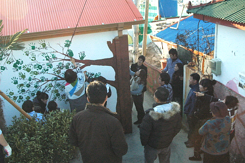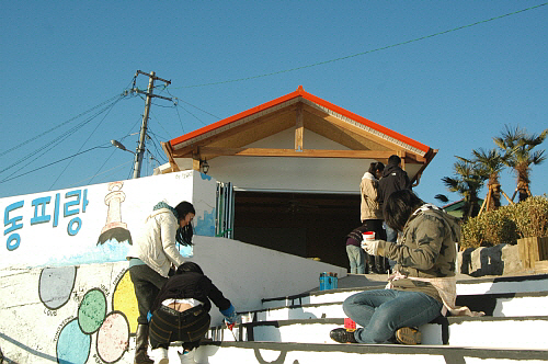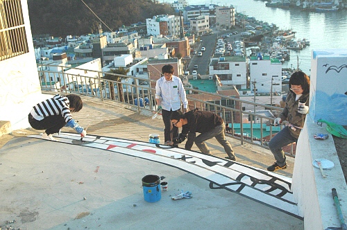 Áö³ÇØ 12¿ù29ÀϺÎÅÍ ¼¼ Â÷·Ê¿¡ °ÉÃÄ ¿Ï¼ºÇÑ ÀÌ º®È´Â ¿ø¼þÀÌ, ¾ó·è¸», ÄÚ³¢¸® µîÀÇ ¾ûµ¢À̸¦ Àͻ콺·´°Ô Ç¥ÇöÇß°í, Å뿵 ¾Õ¹Ù´Ù ÆÄµµ¿¡ °í·¡°¡ ¶Ù³ë´Â °ÍÀ» Çü»óÈÇß´Ù. ¶Ç °è´Ü¿¡´Â À½Ç¥¸¦ ±×·Á ³Ö¾î Å뿵ÀÌ À±ÀÌ»óÀ» ³ºÀº ¿¹ÇâÀÇ µµ½Ã¶ó´Â °ÍÀ» »ó±â½ÃÄ×´Ù.
