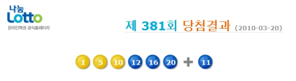 381ȸ ·Î¶Ç 1µî '1, 5, 10, 12, 16, 20'...º¸³Ê½º 11