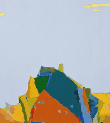 ÀÛ°¡ÀÇ ±×¸²¿¡´Â ¸î °¡Áö Á¦ÇÑµÈ »ö丸ÀÌ ¾²À̰í ÀÖÁö¸¸ ´Ü¼øÇÑ »ö¸éµéÀ» ¹ÙÅÁÀ¸·Î ¼ø¼ö Á¶Çü¾ð¾î¿¡ »ý»ýÇÑ Çö½Ç°¨À» ÀھƳ»´Â µíÇÏ´Ù. ÀÛ°¡´Â º¸¸§´Þ Çϳª, ±¸¸§ ÇÑ Á¡, °³ÆÞÀÇ ±¸Á¶¹°, ÁöºØÀÇ À±°û¼± µîÀ» Ç¥ÇöÇϱâ À§ÇØ º× ´ë½Å ³ªÀÌÇÁ¸¦ »ç¿ëÇß´Ù.