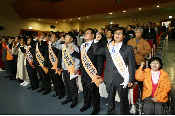 °º´±â °æ³²µµÁö»ç ¿¹ºñÈ帴 ¡°2008³â »çõÀÇ ±âÀû¿¡ ÀÌ¾î ±¹¹Î¿¡°Ô »õ·Î¿î Èñ¸ÁÀ» µå·Á¾ß ÇÒ ¶§¿Í ¿Ô°í, ±×°÷ÀÌ °¨È÷ °ÅÁ¦¶ó°í ¹Ï°í ÀÖ´Ù¡±¸ç ¡°ÀÌÁ¨ ³ëµ¿ÀÚ µµ½Ã¿¡¼ ³ëµ¿ÀÚ°¡ ½ÃÀåÀÌ µÅ ½Ã¹Îµé¿¡°Ô Èñ¸Á°ú Áø½ÇÀÌ ¹«¾ùÀÎÁö º¸¿©ÁÖ´Â ½Ã´ë¸¦ ¿¾î¾ß ÇÑ´Ù¡±°í °Ý·ÁÇß´Ù.