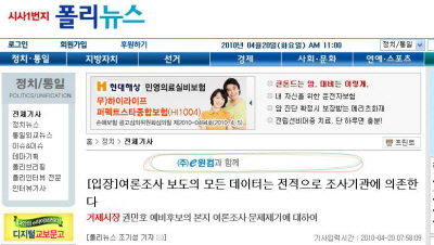 3. ¶ÇÇÑ, ¿©·ÐÁ¶»çÀÇ °øÁ¤¼º¿¡ ÀÖ¾î ÀÀ´ä·ü¿¡ ´ëÇÑ º¸µµ°¡ ¾ø´Ù´Â ÀÌÀ¯·Î ¿©·ÐÁ¶»ç µ¥ÀÌÅÍ ÀüüÀÇ ½Å·Ú¼º°ú °øÁ¤¼ºÀ» ÆïÇÏÇÏ´Â °ÍÀº ¾îºÒ¼º¼³À̶ó ÇÒ ¼ö ÀÖ´Ù. ¼±°Å¹ý»ó ±âÀçÇÏ°Ô µÇ¾îÀÖ´Â ÀÀ´ä·üÀ» ´©¶ôÇÑ ºÎºÐÀº À߸øµÈ ºÎºÐÀ̳ª, ÀÀ´ä·ü¿¡ ´ëÇÑ ºÎºÐÀÌ ºüÁø °ÍÀº Çѱ¹°¶·´ÀÌ ÀÔÀåÀ» Ç¥¸íÇÑ °Í°ú °°ÀÌ Çѱ¹°¶·´ÀÌ Æú¸®´º½º¿¡ Á¦°øÇÑ Ã¹ º¸°í¼¿¡¼ ´©¶ôµÆ±â ¶§¹®À̸ç, 3ÀÏ ÈÄ Æú¸®´º½º°¡ Çѱ¹°¶·´¿¡ ¿äûÇÑ ¼öÁ¤º¸°í¼¿¡ ±âÀçµÇ¾î ¿Í ±× ³»¿ëÀ» º¸¿ÏÇß´Ù. Áß¾Ó¼±°üÀ§¿¡¼µµ Çѱ¹°¶·´¿¡ ´ëÇÑ ¹®Á¦Á¦±â´Â óÀ½À̶ó Çß°í ¿ì¸® ±Ç ¿¹ºñÈ帰¡ ¹®Á¦Á¦±âÇÑ 2010³â 4¿ù 16ÀÏÀÚ '[6.2Áö¼±]°ÅÁ¦½ÃÀå Çѳª¶ó´ç Èĺ¸¼±È£µµ ±èÇѰâ 32.5% 1À§' ±â»çÀÇ ±ÕÇü°¨°¢°ú ¿©·ÐÁ¶»ç º¸µµ ±â»çÀÇ ±¸ºñ¿ä°ÇÀº ¿Ïº®ÇÏ´Ù°í Çß´Ù. °ÅÁ¦½Ã ¼±°üÀ§¿¡¼µµ ¸¶Âù°¡Áö ÀÔÀåÀ¸·Î ÀÀ´äÀ²À» Á¶»ç±â°ü¿¡ ¾Ë¾Æº» ÈÄ º¸¿ÏÇÏ¸é µÈ´Ù°í Çß´Ù. °Ô´Ù°¡, ÀÌ¿¡ ´ëÇØ ±Ç¹ÎÈ£ ¿¹ºñÈĺ¸ Ãø¿¡¼ ÀÌÀǰ¡ ÀÖ¾ú´Ù¸é ¿ì¼±ÀûÀ¸·Î º»»ç µ¥½ºÅ©¿¡ ¼öÁ¤º¸µµ ¿äûÀ̳ª ¿©·ÐÁ¶»ç ÀÚ·á¿äû ÈÄ »ç½Ç È®ÀÎ ÀýÂ÷¸¦ °ÅÃÆ¾î¾ß ÇÕ´çÇϳª ÀüÇô ±×·± »ç½Ç È®ÀÎÁ¶Â÷ ÇÏÁö ¾Ê¾Ò´Ù.