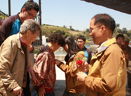¸¶À»ÁֹεéÀº ÇÑ·ÁÇØ»ó±¹¸³°ø¿øµ¿ºÎ»ç¹«¼Ò Á÷¿øµéÀÌ ¼Õ¼ö ¸¸µç ¼±¹°ºÀÁö¿Í ÇÔ²² Ä«³×À̼ÇÀ» ¹Þ°í °¨»çÀÇ Àλ縦 ÀüÇß´Ù. ¾ÆÀ̵鵵 ÇØ¸¼Àº ¹Ì¼Ò·Î ±â»µÇß´Ù.