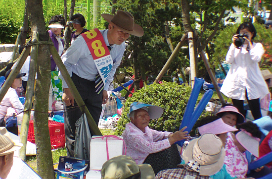 ¶§ ¾Æ´Ñ 5¿ù ¹«´õÀ§¿¡µµ °ÅÁ¦½Ã Á¦1¼±°Å±¸ ¹«¼Ò¼Ó 8¹ø Ȳ¾çµæ µµÀÇ¿ø È帰¡ À¯±ÇÀÚµé°ú Áñ°Å¿î À¯¼¼È°µ¿À» ¼±º¸¿´´Ù. Ȳ Èĺ¸´Â È£»ê³ª ±³È¸ ¼ºµµµéÀÇ ÇѸ¶À½ ÃàÁ¦¿¡ Âü°¡, ¿Õ³âÀÇ ÀÀ¿ø ¼Ø¾¾¸¦ »Ë³»¸ç ¼ºµµµéÀÇ ÀÀ¿øÀ» À¯µµÇϱ⵵ Çß´Ù.