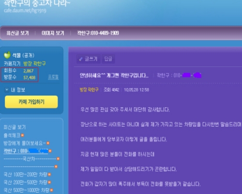 °ûÇѱ¸´Â Áö³ ´Þ 14ÀÏ '°ûÇѱ¸ÀÇ Áß°íÂ÷ ³ª¶ó'¶ó´Â Ä«Æä¸¦ °³¼³Çϰí ÀÚ½ÅÀÇ ÈÞ´ëÀüÈ ¹øÈ£¸¦ °ø°³ÇÏ´Â µî º»°ÝÀûÀ¸·Î Áß°íÂ÷µô·¯·Î Ȱµ¿Çϰí ÀÖ´Ù.