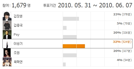 ¿ùµåÄŽÃÁðÀ» ¸Â¾Æ À½¾ÇÆ÷ÅÐ ¹÷½º¿¡¼ ¡®¿ùµåÄÅ ÀÀ¿ø´ÜÀåÀ¸·Î ´©°¡ ÃÖ°í?¡¯¶ó´Â ÁÖÁ¦·Î ÅõÇ¥¸¦ ÁøÇàÇß´Ù. Áö³ 5¿ù 31ÀϺÎÅÍ 6¿ù 7ÀϱîÁö, ÃÑ 1,679¸íÀÇ ³×ƼÁðÀÌ Âü¿©ÇÑ °á°ú 32%ÀÇ µæÇ¥À²·Î ±¹¹Î³²µ¿»ý¡¯ À̽±Ⱑ 1À§¸¦ Â÷ÁöÇß´Ù.