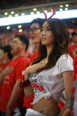 Áö³ 12ÀÏ Çѱ¹°ú ±×¸®½ºÀüÀ» ¾ÕµÎ°í Æø¿ì ¼Ó¿¡¼µµ ±æ°Å¸® ÀÀ¿øÀÌ ÆîÃÄÁø °¡¿îµ¥ À̳¯ °æ±â¸¦ °ü¶÷ÇÑ ÇÑ ³×ƼÁðÀÌ ÀÀ¿ø´Ü Áß °¡½¿¿¡ ¼ÕÀ» ¸ðÀ¸°í ¾Ö±¹°¡¸¦ ºÎ¸£´Â ÇÑ ¿©¼ºÀÇ »çÁøÀ» Æ÷ÅÐ »çÀÌÆ® °Ô½ÃÆÇ¿¡ ¿Ã·Á À̸ñÀ» ÁýÁß½ÃÄ×´Ù.