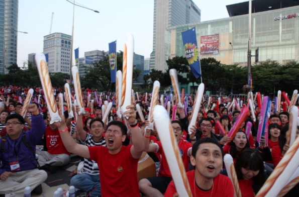 SPC±×·ì ÀÓÁ÷¿øµéÀº ºÓÀº ¾Ç¸¶µé°ú ¾î¿ì·¯Á® Çѱ¹-³ªÀÌÁö¸®¾Æ °æ±â¸¦ °ü¶÷ÇÏ¸ç ¿¶í ÀÀ¿øÀüÀ» ÆîÃÆ´Ù. Áö³ 1Â÷ÀüÀº ÀåÃæÃ¼À°°ü¿¡¼, 2Â÷ÀüÀº ¾à 20¸¸ ¸íÀÌ ¸ðÀÎ ¿µµ¿´ë·Î¿¡¼ ÀÀ¿øÇßÀ¸¸ç, À̹øÀÌ ¼¼ ¹øÂ°´Ù.