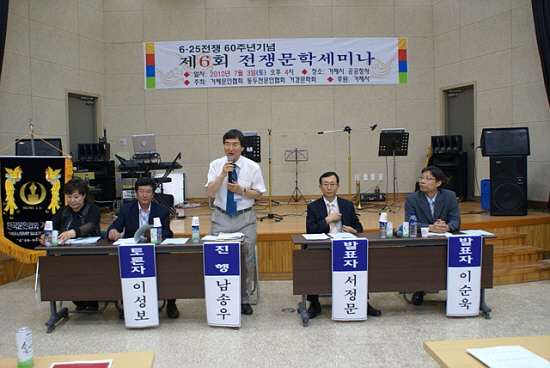 Çѱ¹ÀüÀï 60ÁÖ³âÀ» ¸Â¾Æ ¿¸° Á¦ 6ȸ ÀüÀï¹®Çм¼¹Ì³ª °¿¬¿¡¼´Â µ¿µÎõ¹®Çù ¼Á¤¹® ȸ¿øÀÇ ¡®ÀüÀï½Ã ¹× ÀüÀï ÈÄ ¹®ÇÐȰµ¿¿¬±¸¡¯, À̼ø¿í ¹®ÇйڻçÀÇ ¡®Çѱ¹ÀüÀï ÇdzÁö ¹®Çаú ¹Ý°øÁÖÀÇ ¡¯¿¡ ´ëÇÑ ¹ßÁ¦¿Í °ÅÁ¦¹®Çù À̼ºº¸ °í¹®°ú µ¿µÎõ ¹®ÇùÀÇ ±è¿µÃ¶ ȸ¿øÀÇ Åä·ÐÀ¸·Î ÁøÇàµÆ´Ù.