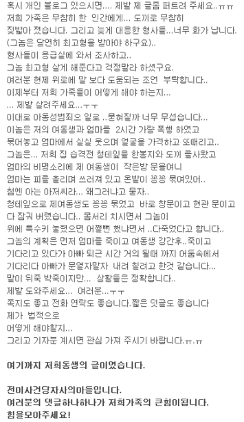 ÇÏÁö¸¸ Àϰ¡Á·ÀÌ ¹«ÂüÈ÷ ÆøÇà ´çÇÑ ²ûÁ÷Çϰí Ãæ°ÝÀûÀÎ »ç°ÇÀÌ ´Ü¼øÇÑ ÆøÇà»ç°í·Î ¹¯Èú »· Çß´Ù´Â Á¡¿¡ »ç°ÇÀ» Á¢ÇÑ »ç¶÷µéÀº ¾ÆÁ÷±îÁöµµ ÈïºÐÀ» °¡¶ó ¾ÉÈ÷Áö ¸øÇϰí ÀÖ´Ù.