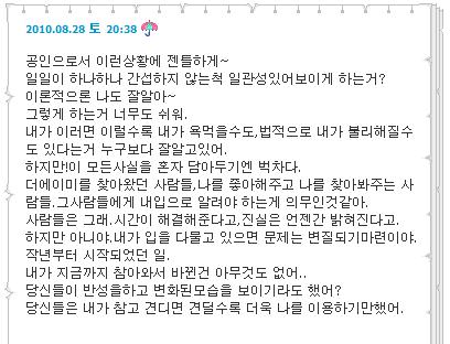 ¿¡À̴̹ Áö³ 28Àϰú 29ÀÏ¿¡ °ÉÃÄ ÀÚ½ÅÀÇ ¹Ì´ÏȨÇǸ¦ ÅëÇØ ¡°³ª¸¦ ÁÁ¾ÆÇØÁÖ°í ³ª¸¦ ã¾ÆºÁÁÖ´Â »ç¶÷µé, ±× »ç¶÷µé¿¡°Ô ³»ÀÔÀ¸·Î ¾Ë·Á¾ß ÇÏ´Â °Ô Àǹ«ÀÎ °Í °°´Ù¡±¸ç ¡°»ç¶÷µéÀº ½Ã°£ÀÌ ÇØ°áÇØÁشٰí, Áø½ÇÀº ¾ðÁ¨°¡ ¹àÇôÁø´Ù°í ÇÏÁö¸¸ ¾Æ´Ï´Ù. ³»°¡ ÀÔÀ» ´Ù¹°°í ÀÖÀ¸¸é ¹®Á¦´Â º¯ÁúµÇ±â ¸¶·Ã¡±À̶ó¸ç ÀÚ½ÅÀÇ ½ÉÁ¤À» Åä·ÎÇß´Ù.