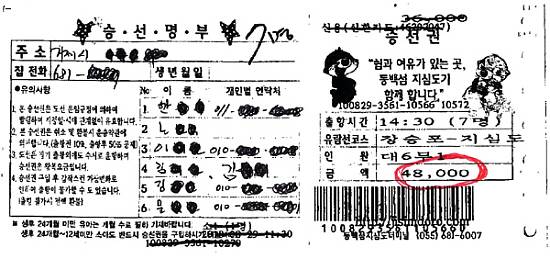 ¿Üµµ ½Â¼±·á´Â 1¸¸3000¿øÀÌÁö¸¸ 1¸¸¿øÀ» Áö±ÞÇß°í 1¸¸2000¿øÀÎ Áö½Éµµ µµ¼±ºñ´Â 4000¿øÀ» »« 1Àδç 8000¿øÀÇ ¿µ¼öÁõÀÌ ¹ß±ÞµÆ´Ù°í ¹àÇû´Ù. ±×·¯³ª Â÷°¨µÈ µ·Àº ½Â°´µéÀÌ µÇµ¹·Á ¹ÞÁö ¸øÇÑ °ÍÀ¸·Î ¾Ë·ÁÁ³´Ù.