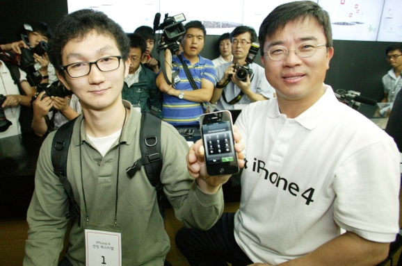 ¾ÖÇÃ»ç ¾ÆÀÌÆù4°¡ ¸¹Àº »ç¶÷µéÀÇ ±â´ë ¼Ó¿¡¼ ±¹³» º»°Ý ÆÇ¸Å¸¦ ½ÃÀÛÇÑ °¡¿îµ¥, 1È£Æù °³Åë °í°´ ½ÅÇöÁø¾¾°¡ KT Ç¥Çö¸í »çÀå°ú ±â³äÃÔ¿µÀ» Çϰí ÀÖ´Ù.