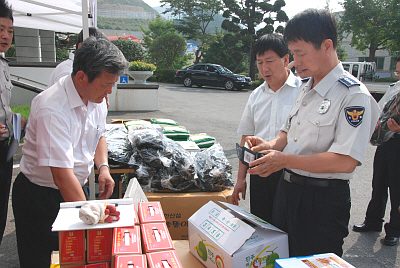 °æÂû¼ Á÷¿øµéÀº Áö¿ª ³ó¹ÎµéÀÌ »ý»êÇÑ ½Ò, ¸Þ·Ð, ¸êÄ¡, ³Ãµ¿»õ¿ì, ¸Û°Ô¹Ì´õ´ö¼¼Æ® µî ¿ì¼öÇÑ Ç°ÁúÀÇ ³ó»ê¹° 8°³ ǰ¸ñ ÃÑ 450¿©¸¸¿ø »ó´çÀ» ±¸¸ÅÇß´Ù.