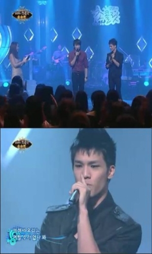 ÇÑÆí ¡®Ãµ»ý¿¬ºÐ¡¯¹«´ë ÈÄ TEEN TOP(ƾž)Àº ŸÀÌÆ² °î ¡®¹Ú¼ö¡¯·Î ÇÑÃþ ÆÄ¿öÇ®ÇØÁø ¾È¹«¸¦ ¼±º¸ÀÌ¸ç ¹«´ë¸¦ À̾´Ù.