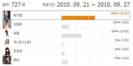 Áö³ 9¿ù 21ÀÏ~9¿ù 27ÀϱîÁö À½¾ÇÆ÷ÅÐ ¹÷½º¿¡¼ ¡®¿©±ºÀ¸·Îµµ ¾î¿ï¸± °Í °°Àº °¡¼ö´Â?¡¯ ¶ó´Â ÁÖÁ¦·Î ¹÷½º ÅõÇ¥¸¦ ÁøÇàÇÑ °á°ú, 49%ÀÇ ³ôÀº ÁöÁö¸¦ ¹ÞÀº °¡Èñ(¾ÖÇÁÅͽºÄð)°¡ 1À§¸¦ Â÷ÁöÇß´Ù.