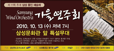 »ï¼ºÀ©µå ¿ÀÄɽºÆ®¶ó°¡ ÁÖÃÖÇÏ°í »ï¼ºÁß°ø¾÷ Áß¿ìȸ°¡ ÈÄ¿øÇÏ´Â °¡À»¿¬ÁÖȸ´Â 40¸íÀÇ ¿ÀÄɽºÆ®¶ó ´Ü¿ø°ú ¹Î¼ÓÀ½¾Ç°¡¼ö, Ç÷縮½ºÆ®¿Í ÇÔ²² ±í¾î°¡´Â °¡À»À½¾Ç µî ´Ù¾çÇÑ ÆÛÆ÷¸Õ½º¸¦ ÁغñÇϰí ÀÖ¾î Èï°Ü¿î ¹«´ë°¡ µÉ Àü¸ÁÀÌ´Ù.