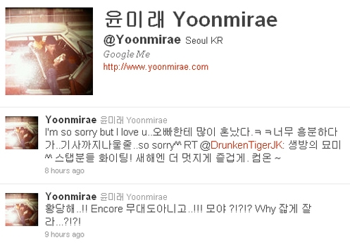 TV·Î °ø¿¬À» ÁöÄѺ» À±¹Ì·¡´Â 30ÀÏ »õº® ÀÚ½ÅÀÇ Æ®À§ÅÍ¿¡ "Ȳ´çÇØ! ¾ÓÄÚ¸£ ¹«´ëµµ ¾Æ´Ï°í ¸ð¾ß? why ª°Ô Àß¶ó?"¶ó°í ºÒ¸¸À» Åä·ÎÇßÀ¸³ª 1½Ã°£ µÚ ´Ù½Ã "¿ÀºüÇÑÅ× ¸¹ÀÌ È¥³µ´Ù. ³Ê¹« ÈïºÐÇÏ´Ù°¡ ±â»ç±îÁö ³ª¿Ã ÁÙ¡¦"À̶ó°í ¹Ù·Î »ç°úÇß´Ù.