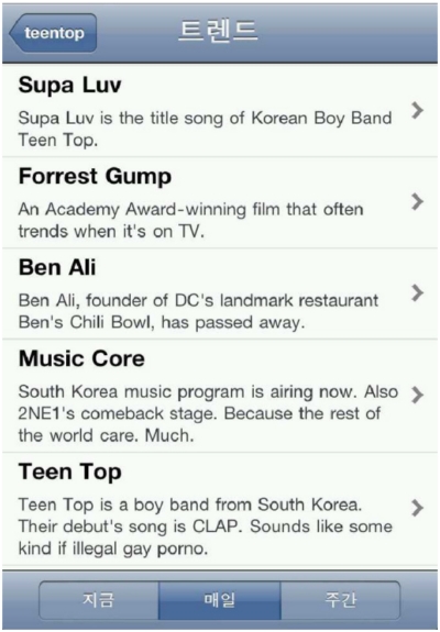Æ®À§ÅÍ¿¡¼ ¡®TEEN TOP(ƾž)¡¯ÀÇ ÆÀ À̸§À» ¼Ò°³ÇÏ¸é¼ ¡°Æ¾Å¾Àº Çѱ¹ÀÇ º¸À̹êµåÀÌ´Ù. µ¥ºß°îÀº ¹Ú¼ö. ¸¶Ä¡ ºÒ¹ý °ÔÀÌ Æ÷¸£³ëó·³ µé¸°´Ù¡±(¿ø¹®: Teen top is a boy band from South Korea. Their debut¡¯s song is CLAP. Sounds like some kind if illegal gay porno) ¶ó°í ¾ð±ÞÇÑ °Í.
